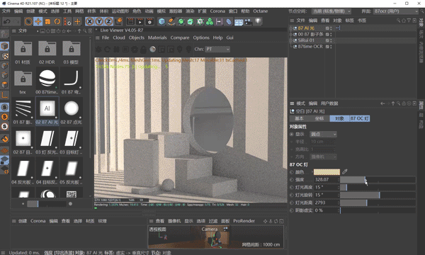 OCR是一个由国内知名的87time C4D在线教育机构开发的OC渲染器助手,可以快速高效完成光源渲染。OCR助手可以帮助我们把一些重复琐碎的事高效的完成。如快速灯光位置阴影虚实,灵活控制灯光与反光板OCR支持各OC渲染器版本。适合有一定OC基础的同学使用。