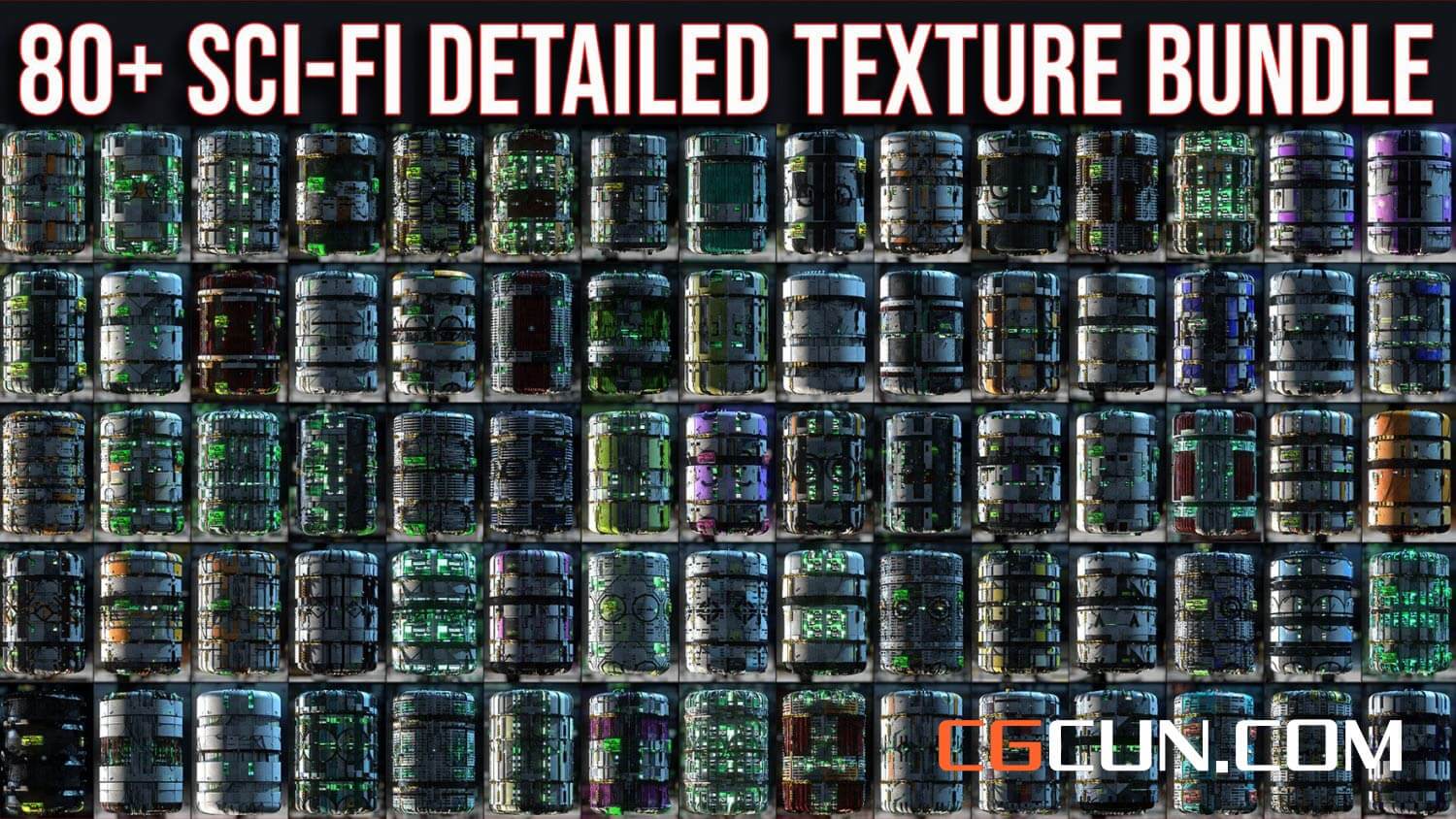 包含8组科幻风格贴图材质,PNG格式,使用于任何三维软件。80种独特的详细科幻硬表面材料 可以在任何3D软件中使用 不需要任何其他插件