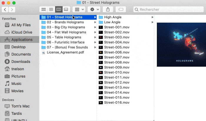 01 – Street Holograms 16种都有常规/高角度/低角度三种模式 共48个视频(街道全息图)